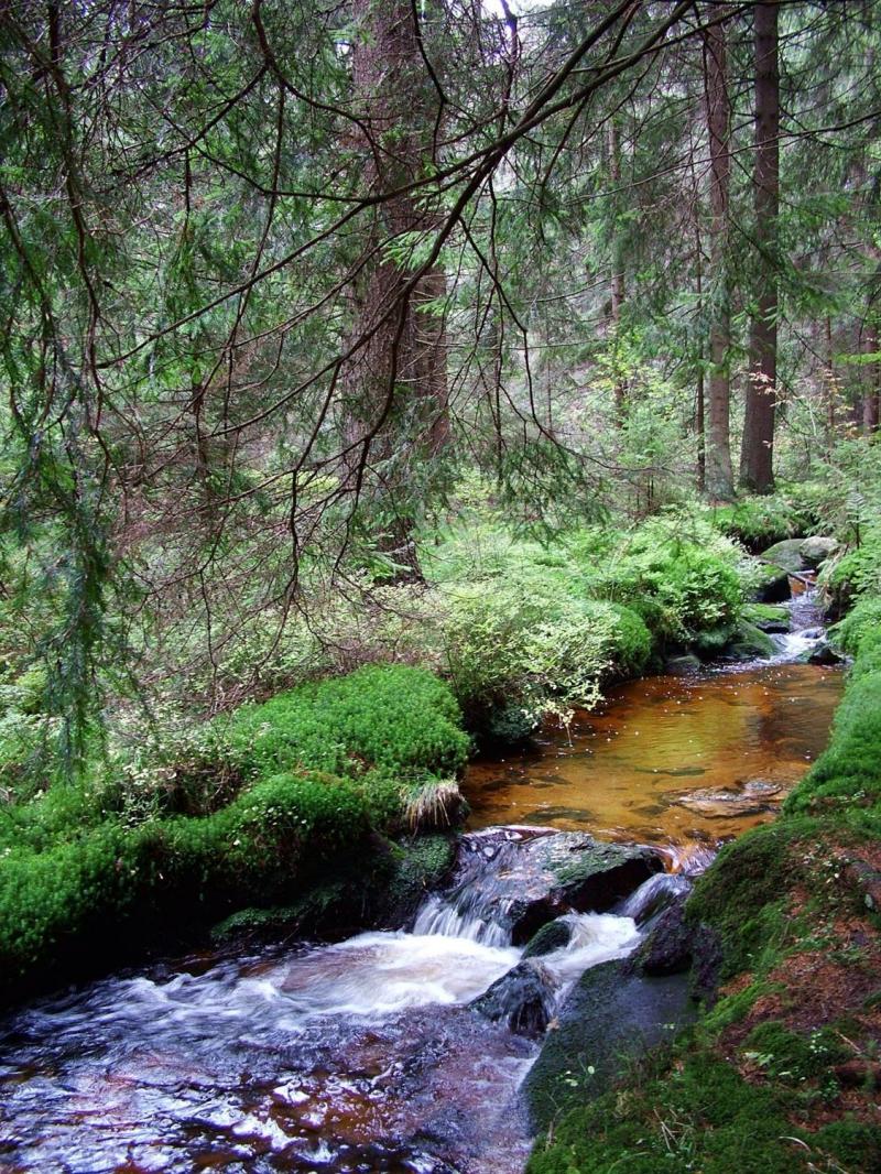 - nach Norden die Saale, Saalquelle mit Nebenfluss Lamitz